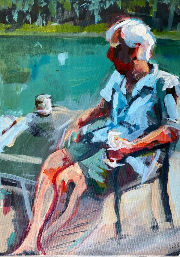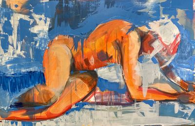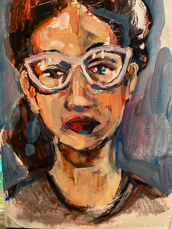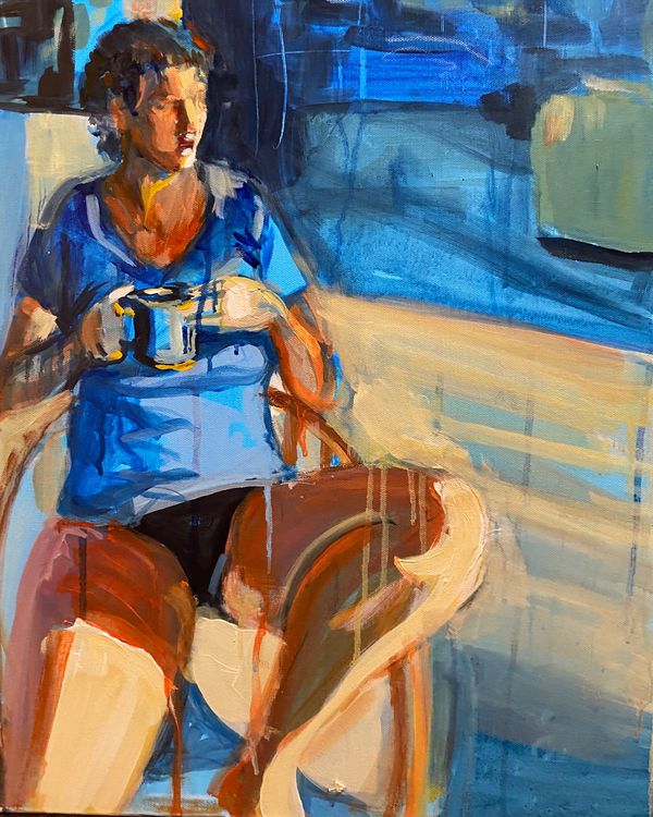I started drawing the human figure at three years old. I started drawing very young and have loved it most of my life. I started painting devotedly in 1993, first with watercolor, and moved to acrylic in 1995. In 2012, I started experimenting with oils and pastels, as well and I love the intensity of the color they both offer. I am currently doing a mix of acrylic background with oil on top of it. Painting is a very physical, almost musical, experience for me. Even if I spend days and weeks on a piece, I hope to always exemplify the fervor of artistic invention and to glorify playful experimentation. Truthfully, the physical application of paint and the physical act of digging into wet paint with a palette knife or even a paintbrush handle excites me. I enjoy doing portraits and figures that suggest the idea of an underlying rhythm or continual motion that is in the common moments of everyday life. I use rich, bold, expressive colors because I believe color incites longing and depicts angst and provokes revelry.